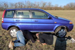 Mint már említettem a kipufogóval valamit csinálnunk kell, ez a kocsi legalacsonyabb pontja. Viszont a kardántengely felett nem tudjuk elvezetni, mert az állítólag…